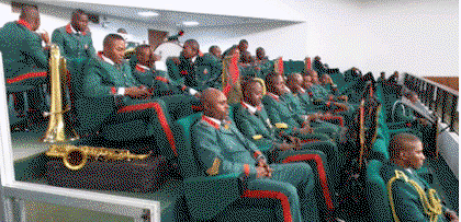 From the right, the Inspector general of Police, Alhaji Ibrahim Idris; Chief of the Air Staff, Air Marshal Sadique Abubaklar; Chief of the Naval Staff Rear Admiral Ibok-Ete Ekwe Ibas, Chief of the Army Staff, Lt. Gen. Tukur Buratai; Chief of the Defence Staff, Gen. Abayomi Olonishakin; the National Security Adviser, Maj. Gen. Babagana Monguno; Defence Minister, Alhaji Dan Ali and the SGF, Mr. Boss Mustapher singing a special birthday song during a Special Birthday Parade to mark the 76th birthday of President Muhammadu Buhari at the State House, Abuja. Photo by Abayomi Adeshida 17/12/2018