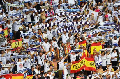 Real Madrid’s celebrates after their team won the UEFA Champions League final football match against Atletico Madrid at the San Siro Stadium in Milan on May 28, 2016. Real Madrid beat city rivals Atletico for the second time in three years to win the Champions League for the 11th time. / AFP PHOTO / GIUSEPPE CACACE