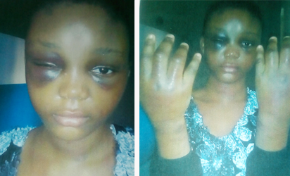 He said that the defendant used knife, iron and belt to hit his daughter on her eyes and hand which made the eyes and hands become swollen.