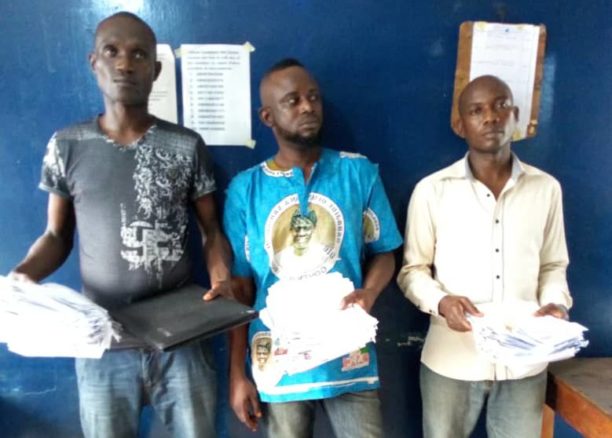 The trio of Kaiyewu Folahan, Akintunde Ibukun and Azeez Kazeem were allegedly selling INEC adhoc staff registration forms to unsuspecting unemployed Nigerians.