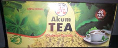 Akum tea is a sure blend for the treatment of insulin dependent and non-insulin dependent diabetes. It contains herbal extracts such as mistletoe and anacardium ocidentale.