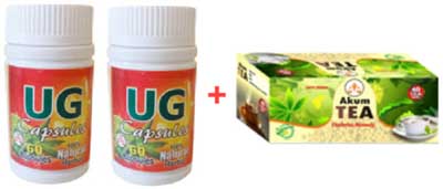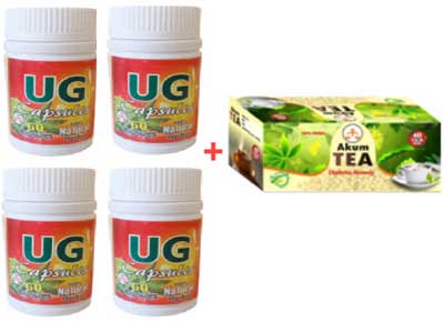 UG capsules mainly contains herbal extracts: spondias mombin 50%, euphorbia hirta 35% and Allium sativum 15%