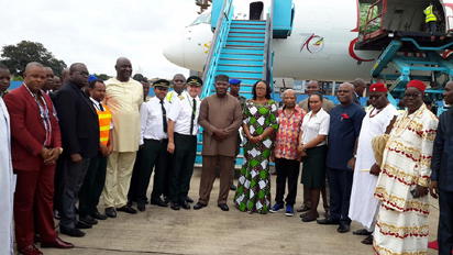 Governor Ifeanyi Ugwuanyi of Enugu State, on Tuesday, August 23, 2016, led other eminent dignitaries of the state to the ceremony marking the landing of the first international cargo aircraft at Akanu Ibiam International Airport, Enugu, courtesy of the Ethiopian Airlines.