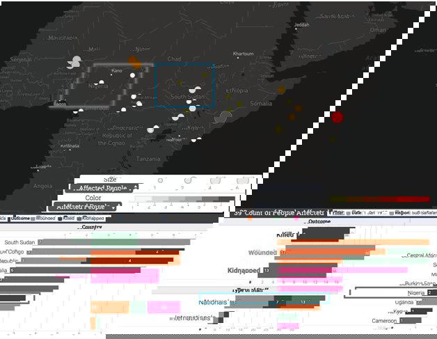 The analysis in this article uses the visual analytics platform for the Aid Worker Security Database created by Keshif.