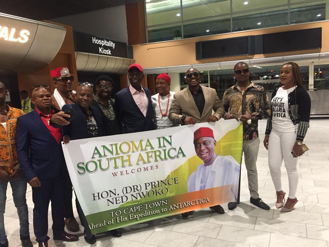 Anioma in South Africa has received Prince Ned Nwoko to Cape Town at the Cape Town International Airport, South Africa ahead of his expedition to Antarctica.