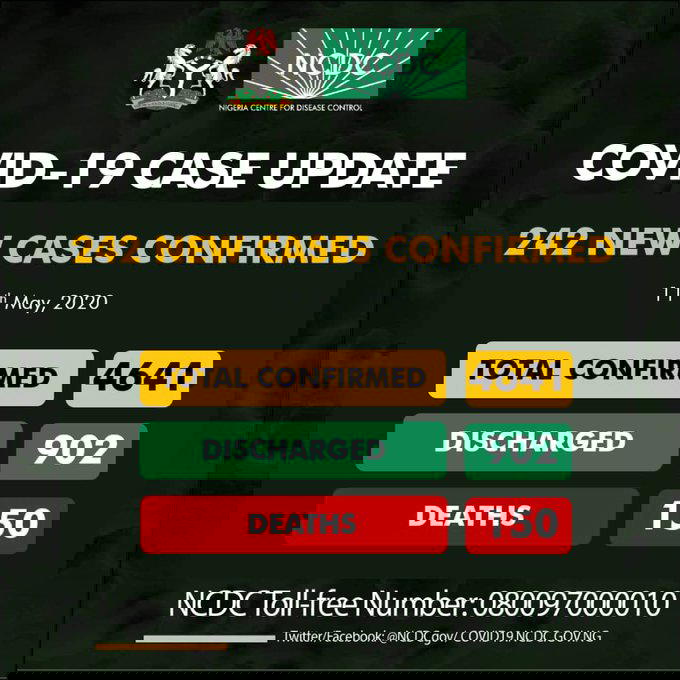It also stated that 242 new cases of the virus have been confirmed, thereby, increasing the total number of confirmed cases in Nigeria to 4,641.