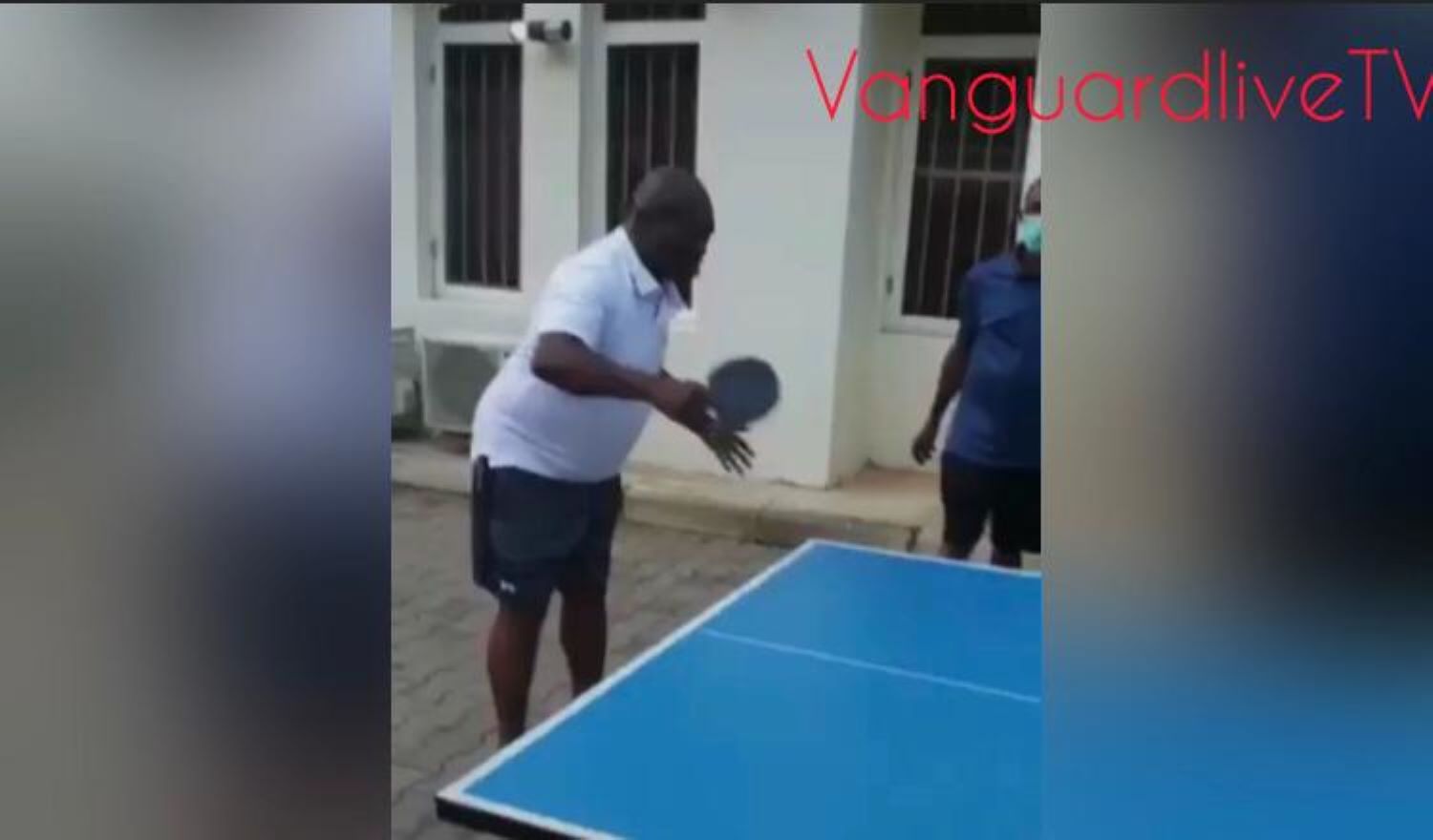 Abia State Governor, Dr Okezie Ikpeazu, engages Dr Godfrey Achilihu MD, in a table tennis exercise today Thursday 2nd July 2020, in what looks like a COVID-19 recovery exercise.