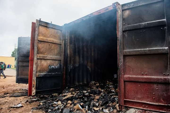 An eyewitness told Vanguard that the mysterious fire which started around 8:55pm razed a large container where the cards were stored.