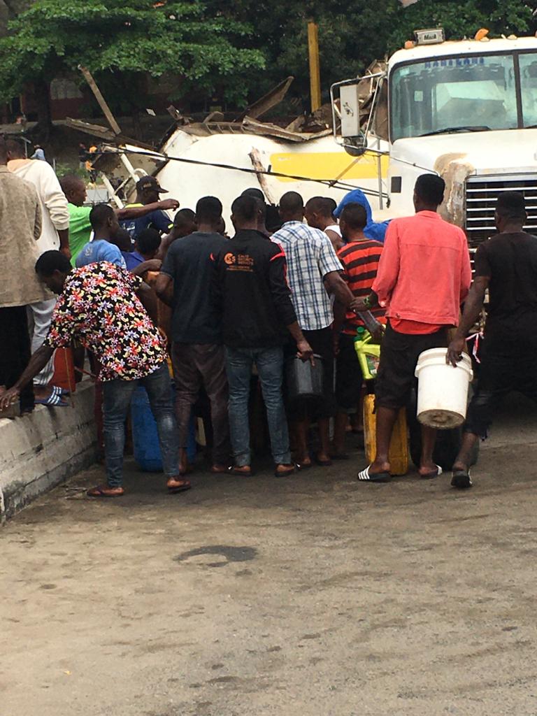 To avoid scooping of fuel, security agencies were alerted but according to an eyewitness, people have started scooping fuel at the scene despite warnings.