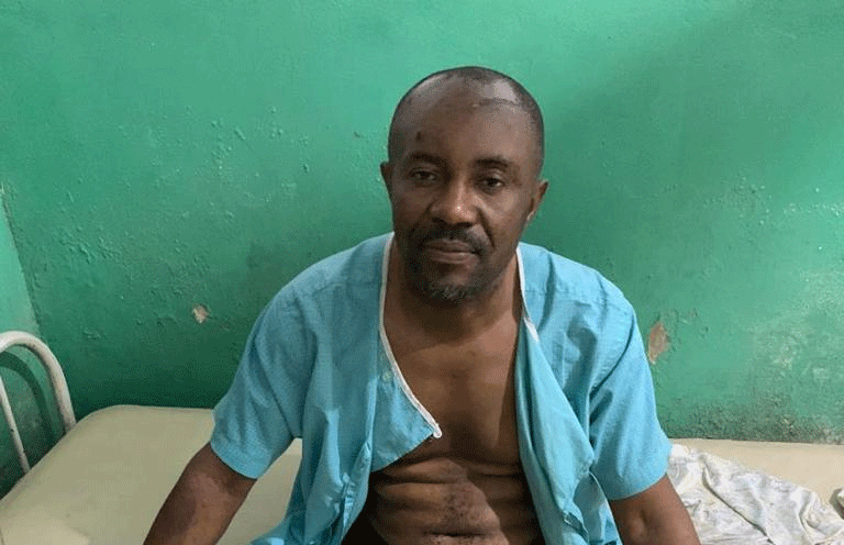 Comrade Samson Pere in hospital bed after his release by kidnappers