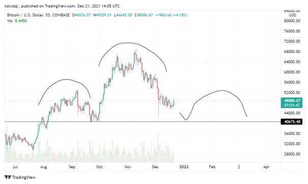 In this case, BTC’s price would likely bounce off the major support at $40,000 and come up to complete the right shoulder before plummeting down towards $30,000. Indicating to investors that a long-term reduction of over 40% from current levels is very much a possibility.