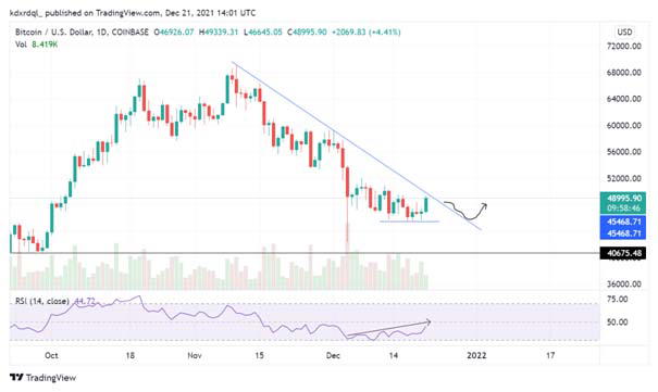 Bitcoin’s bulls have created a short-term stronghold at $45,000 that needs to hold if there is any chance of reversing the downward trend. BTC has been falling in a downward channel since reaching its all-time on November 10 and has already shed 34%.