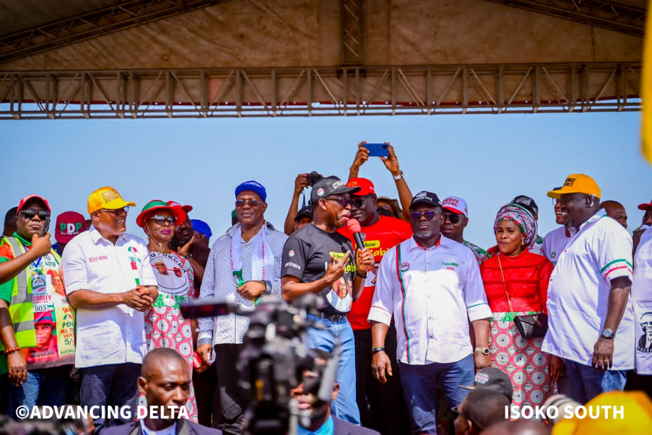 Deputy Governor of the state, Mr Kingsley Otuaro; Director-General of the State Campaign Council, Chief Funkekeme Solomon; Former Governorship aspirant, Chief Fred Majemite, former Chief Whip of the Senate, Senator Stella Omu and Chief of Staff to the Governor, Chief Festus Ovie-Agas who spoke at both rallies assured of the massive support of the people for all candidates of the party.