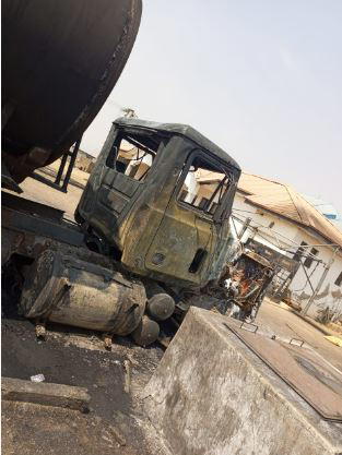 Vanguard gathered the 45,000-litre tanker was discharging its products at about 7:30am when after offloading one and half of the three compartments, it suddenly burst in flames.