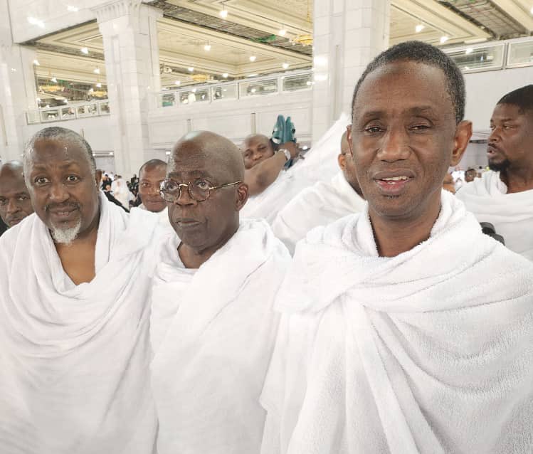 Presidential Candidate of the All Progressive Congress, APC, Senator Bola Ahmed Tinubu has been spotted performing lesser hajj in Mecca on Saturday along with Jigawa State Governor, Abubakar Badaru and others.