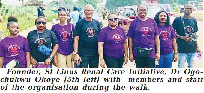 St Linus Renal Care Initiative recently held a kidney disease awareness walk in Benin City, Edo State to sensitise the public to the sufferings of patients with kidney failure, especially advanced cases requiring dialysis or kidney transplant.