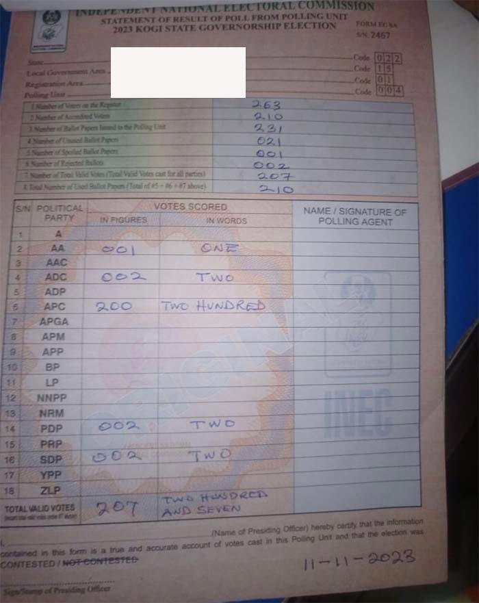 Final result from Kogi
