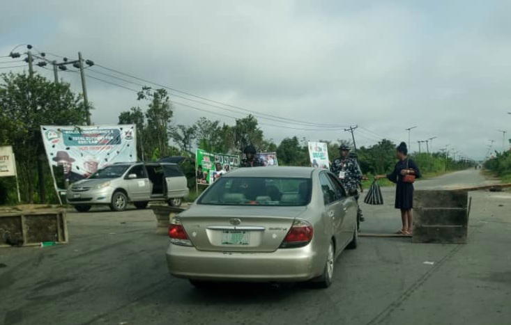 Security pereonnel at Sampou Junction off East-West Road, leading to Governor Douye Diri’s hometown in Kolokuma-Opokuma LGA