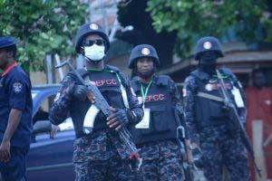 7:28 a.m. Owerri: Police mount reinforced security in front of Imo State Government House. By Chinonso Alozie.