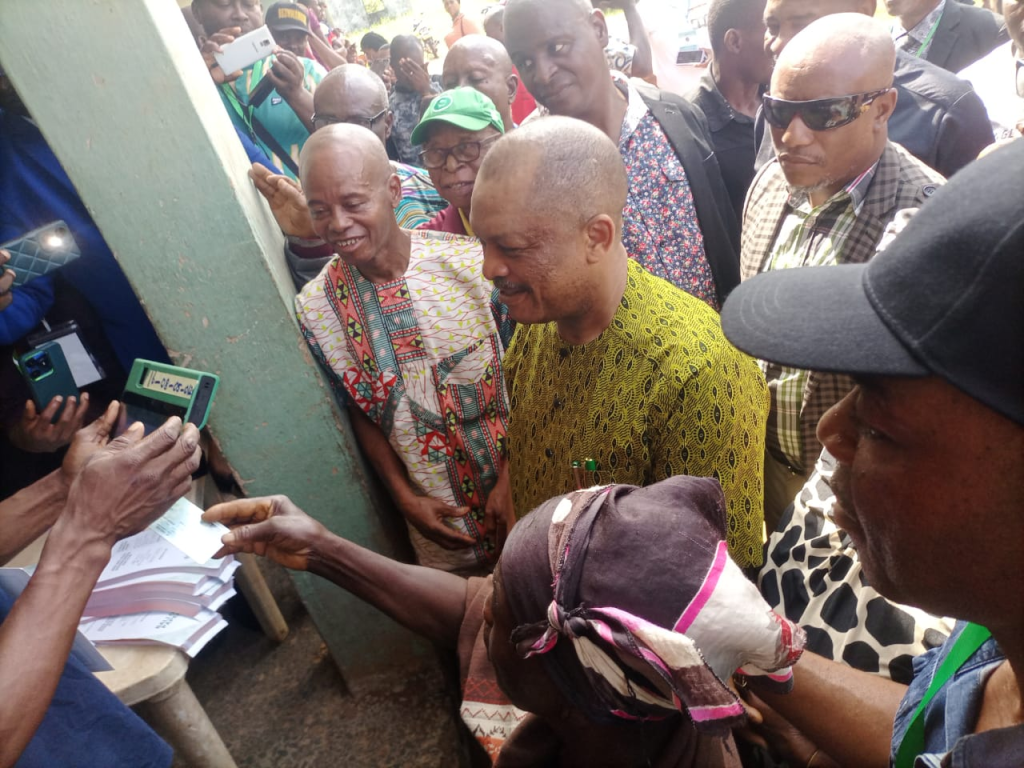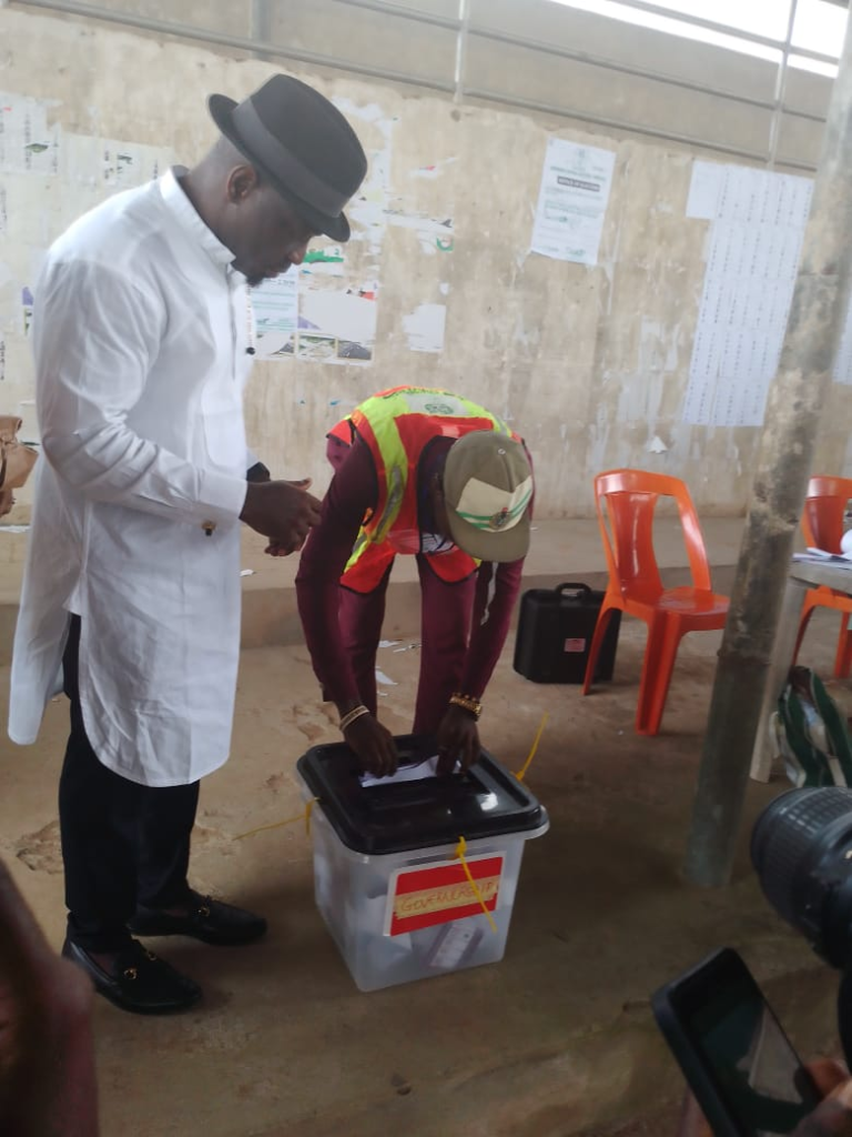 The Labour Party, LP, Governorship Candidate, Engr Udengs Eradiri, casts his vote at Unit 5, Agudama/Ekpetiama Ward 10, Yenagoa LGA at about 10:20am