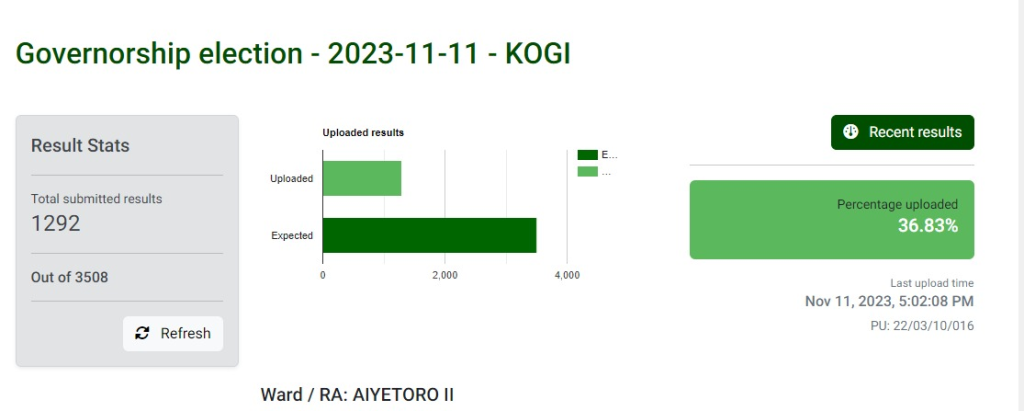 Similarly, the electoral body has uploaded 36.83% of the results in Kogi and 48.21% of the results in Imo State.