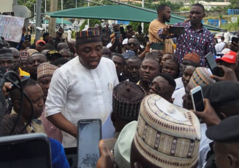 The Social Democratic Party, SDP, candidate in Saturday’s Kogi State governorship election, Muritala Ajaka, and hundreds of his supporters have stormed the headquarters of the Independent National Electoral Commission, INEC, to protest against the outcome of the election.