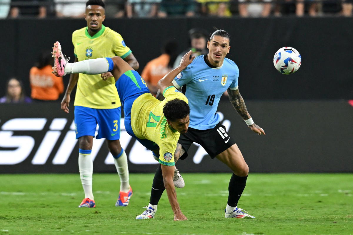 Within moments, Brazil created an opening of their own with Raphinha breaking clear, but Uruguay keeper Sergio Rochet stayed tall and made a vital save.