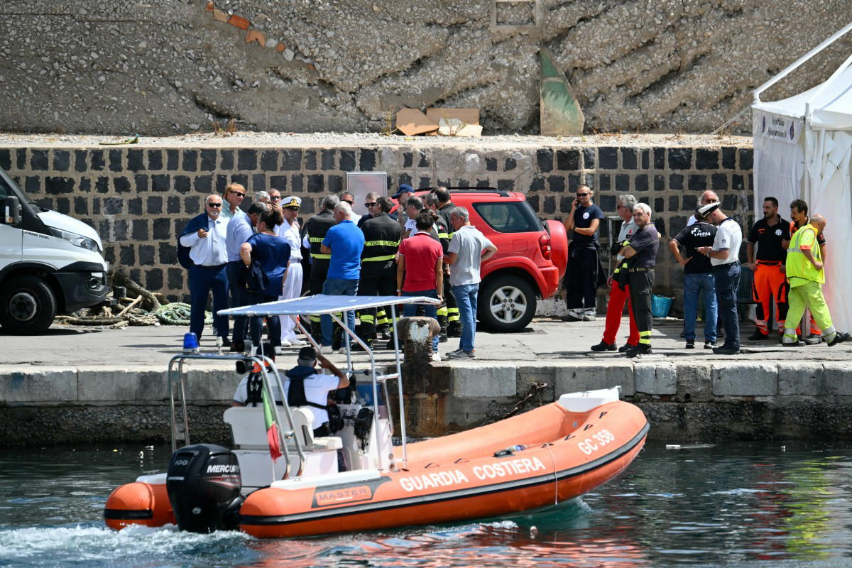 Italian rescue team works in Porticello near Palermo, on August 20, 2024 a day after the British-flagged luxury yacht Bayesian sank. Specialist divers launched a fresh search for six people, including UK tech tycoon Mike Lynch and the chairman of Morgan Stanley International, missing since their yacht capsized off the Italian island of Sicily. – The Bayesian, which had 22 people aboard including 10 crew, was anchored some 700 metres from port before dawn when it was struck by a waterspout, a sort of mini tornado. Fifteen people aboard, including a mother with a one-year-old baby, were plucked to safety; one man has been found dead; and six people remain missing. (Photo by Alberto PIZZOLI / AFP)