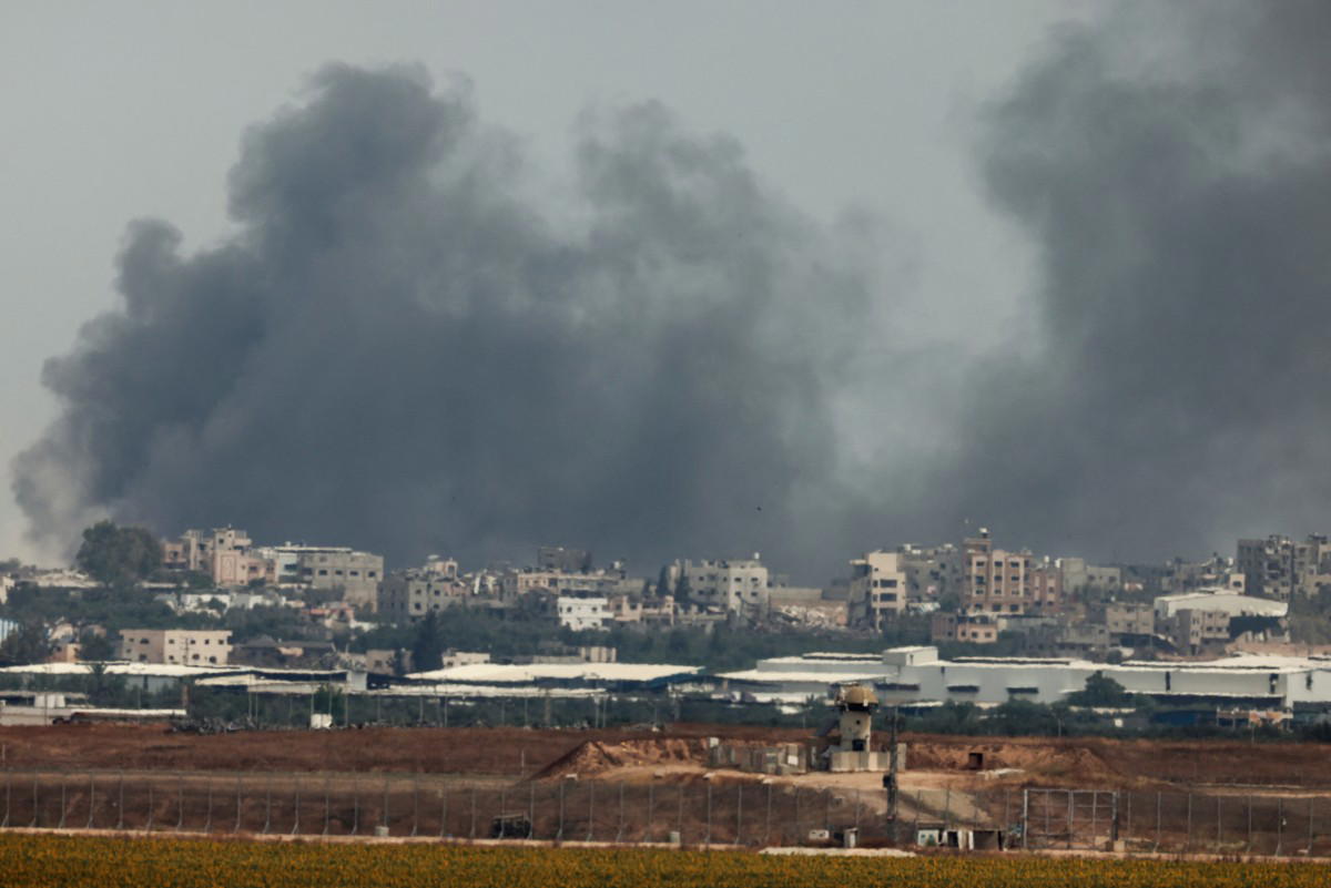 A picture taken from a position along Israel’s southern border with the Gaza Strip shows smoke billowing over the Palestinian territory following Israeli bombardment on May 28, 2024, amid the ongoing conflict between Israel and the militant group Hamas. (Photo by Menahem KAHANA / AFP)