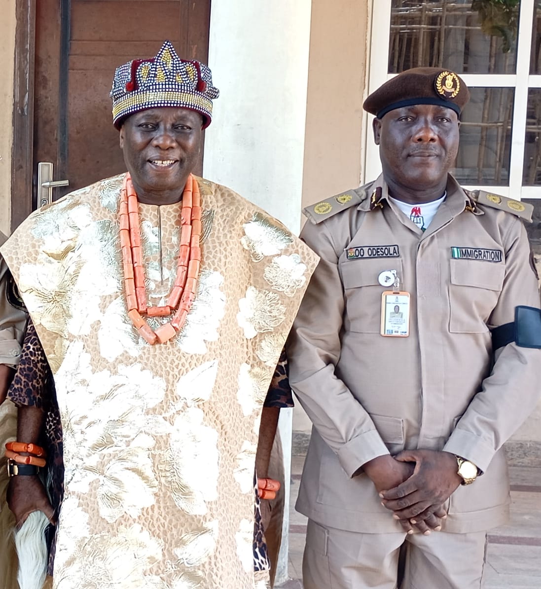 Earlier, the State Comptroller of Immigration, CIS Odesola Olayinka, said the visit was to pay homage to the Asagba and receive royal blessings.