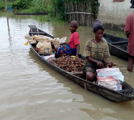 “I spent a lot on yam seedlings and cassava stems, hoping for a bountiful harvest to recoup my investment and pay back my loan. But look at me now. With this flood and premature harvesting, I’m not sure I will even get up to 25 percent of what I invested in this year’s farming. I’m finished. Where do I start again?”