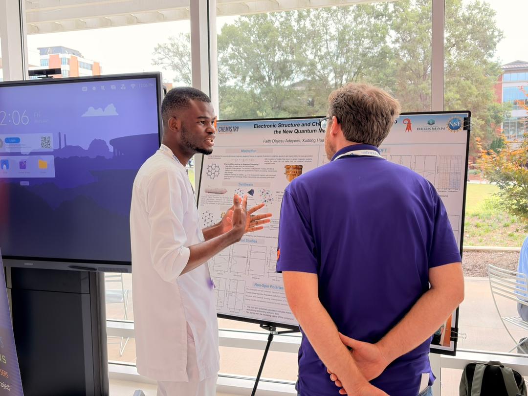 His research has received global visibility, including a presentation at HPC Day 2025 at Clemson University, a premier high-performance computing event featuring experts from Argonne National Laboratory, Los Alamos National Laboratory, TACC, and beyond. Through his poster presentation and lightning talk, he engaged an international audience on advanced computational approaches and the critical role of chemical bonding in quantum materials.