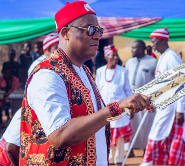 The symbolic emume iriji ohuru (new yam festival) — a celebration of bountiful harvest, unity, and tradition — unfolded in grandeur with a vibrant procession led by HRH Eze Agbugba, accompanied by his cabinet, Eze-in-Council, and Oha Ndi Eze of Anara, from the palace to Anara junction, the epicenter of the community that connects four roads leading to different parts of the state. The procession was marked by traditional rituals, prayers, and supplications to the gods of the land, seeking prosperity, security, peace, and unity for the Anara people.
