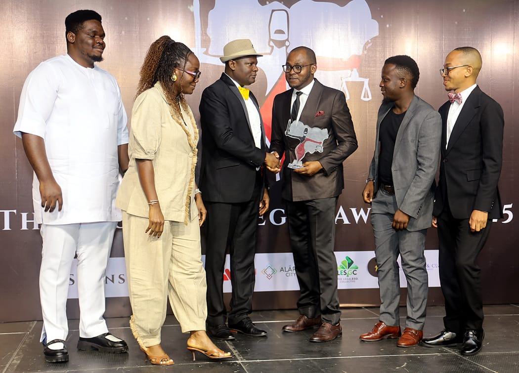 AWARD: From left, Law Firm of the Year winner, Olanihun Ajayi Law Practitioner (OALP) representatives, Zion Odinaka; Busola Bakinson; Presenter of the award, Ola Belgore; receiving the award on behalf of OALP, Bisi Makanjuola; Amos Ubole and other at the ESQ Nigerian Legal Awards 2025 in Lagos.