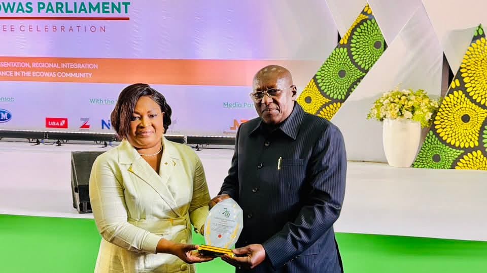 The ECOWAS Parliament has presented an award of recognition to Dr. Sidie Mohamed Tunis, who served as Speaker of the Fifth Legislature from March 2020 to March 2024.