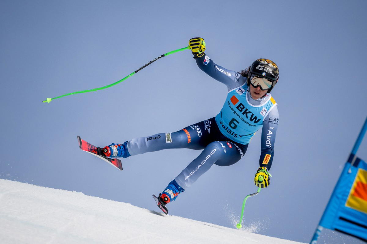 (FILES) Italy’s Federica Brignone competes during the Women’s Super G event at the FIS Alpine Ski World Cup in Crans-Montana on February 18, 2024. Italian alpine skiing World Cup holder Federica Brignone said on November 27, 2025 her return to snow was a “starting point” with the Milan-Cortina Winter Olympics a little more than two months away. (Photo by Fabrice COFFRINI / AFP)