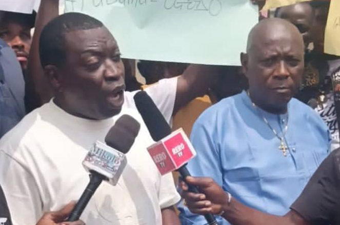Mr Ovo Abeke speaking during the protest
