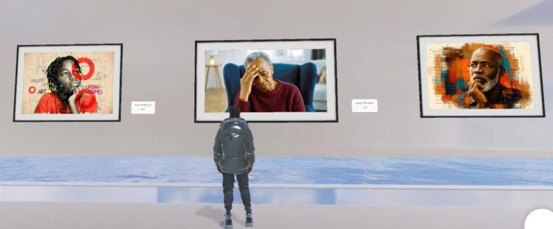 The “35th Community Art Exhibition in Virtual Reality” features works by a distinguished lineup of artists including Mia Banks, Katie Butler, Olga Chekmazova, Francis Chukwuneye, Tessa Coe, Elisabeta Carmen Erdos, P. Franciulli, TG Freeson, Lisa Goddard, Christina Godley, L.C. Hess, Carys Lacey, Savana Mitchell, Nukleopatra, Samson Ojeifo, Lucy Rendle, Bryn Richards, Dey Roper, Aloise Sauthier, and Samson Oriyomi Yusuf.