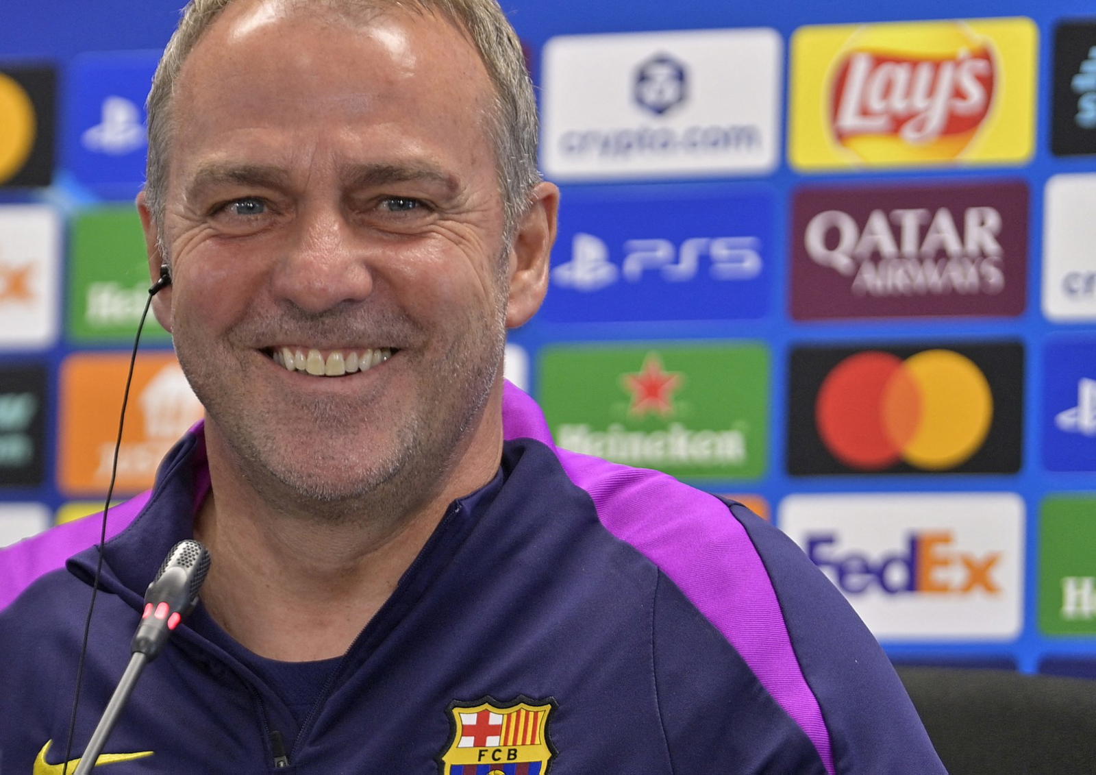 Barcelona’s German coach Hans-Dieter Flick smiles during a press conference on the eve of their UEFA Champions League quarter final football match against Club Atletico de Madrid at the Joan Gamper training ground in Sant Joan Despi, near Barcelona, on April 7, 2026. (Photo by MANAURE QUINTERO / AFP)