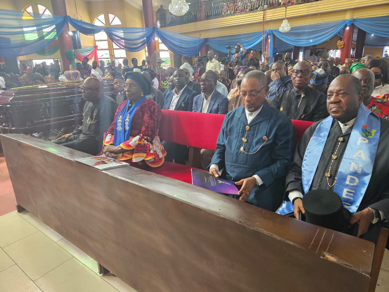 HE Amb Godknows Igali, the Nationa Chairman of Pandef; HE Sir Celestine Ngozichim Omehia, the former Governor of Rivers state; HE Professor Ngozi Nma Odu, the Deputy Governor of Rivers state; and HE Sir Siminalayi Fubara, the Governor of Rivers state at the funeral service of the late monarch of Opobo.