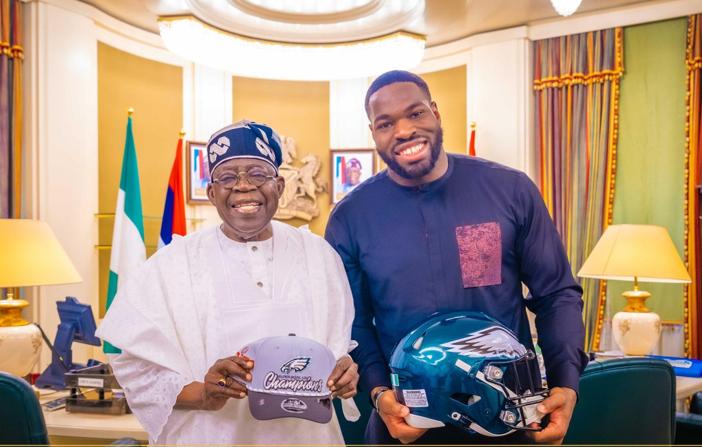 Ojomo, who plays for the Philadelphia Eagles, visited Tinubu alongside his father, Ololade; mother, Bimbo; and sister, Modele.