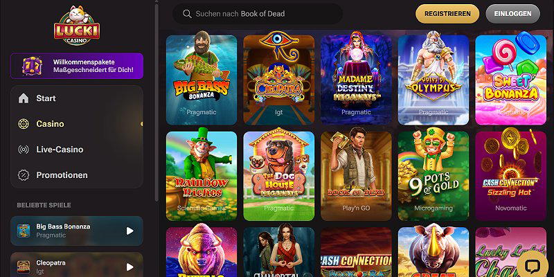 - Lucki.casino: 450 % bis 5.000 € Willkommenspaket.